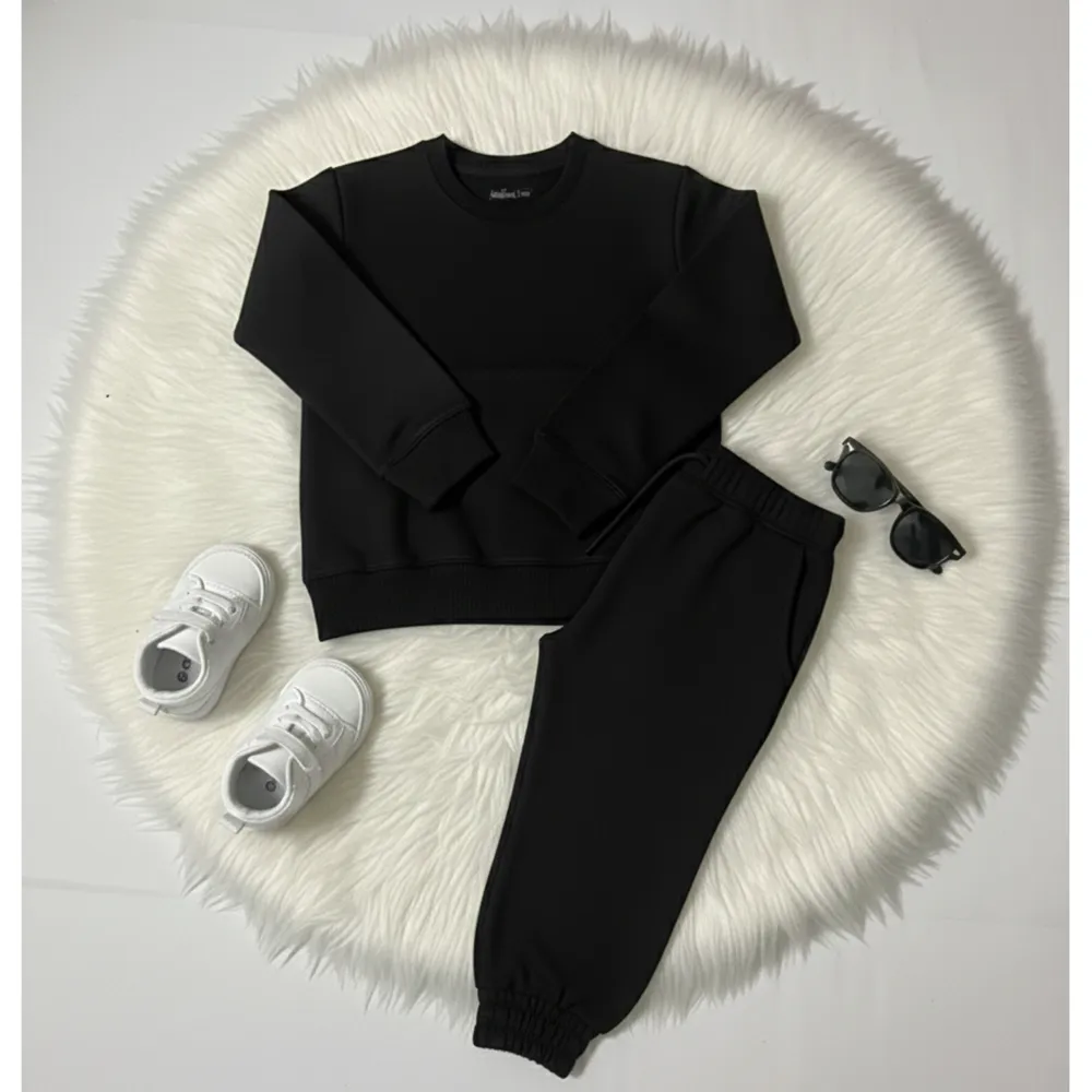 Black Kids Sweatshirt & Trouser Set | Solid Winter Wear for Kids (3–12 Years)