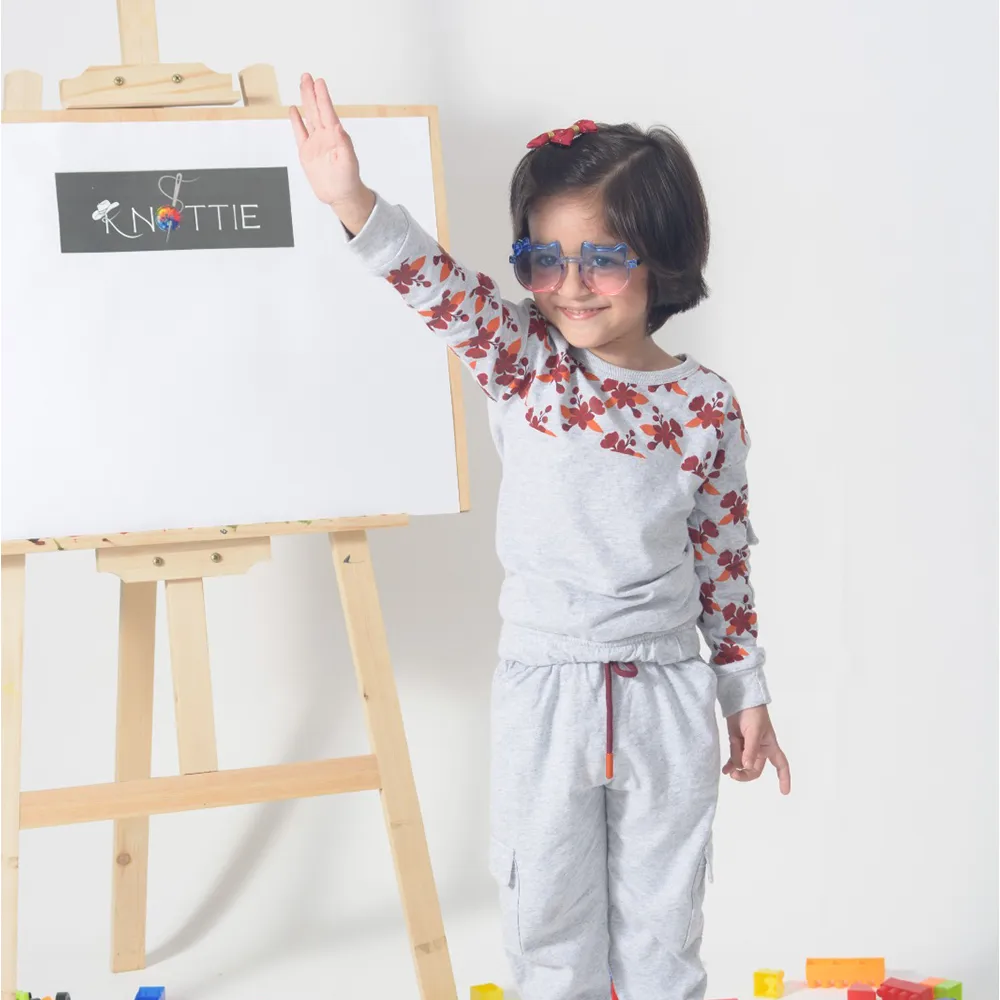 Floral PJ Set for Girls – Grey Cotton Printed Cargo Top & Bottom