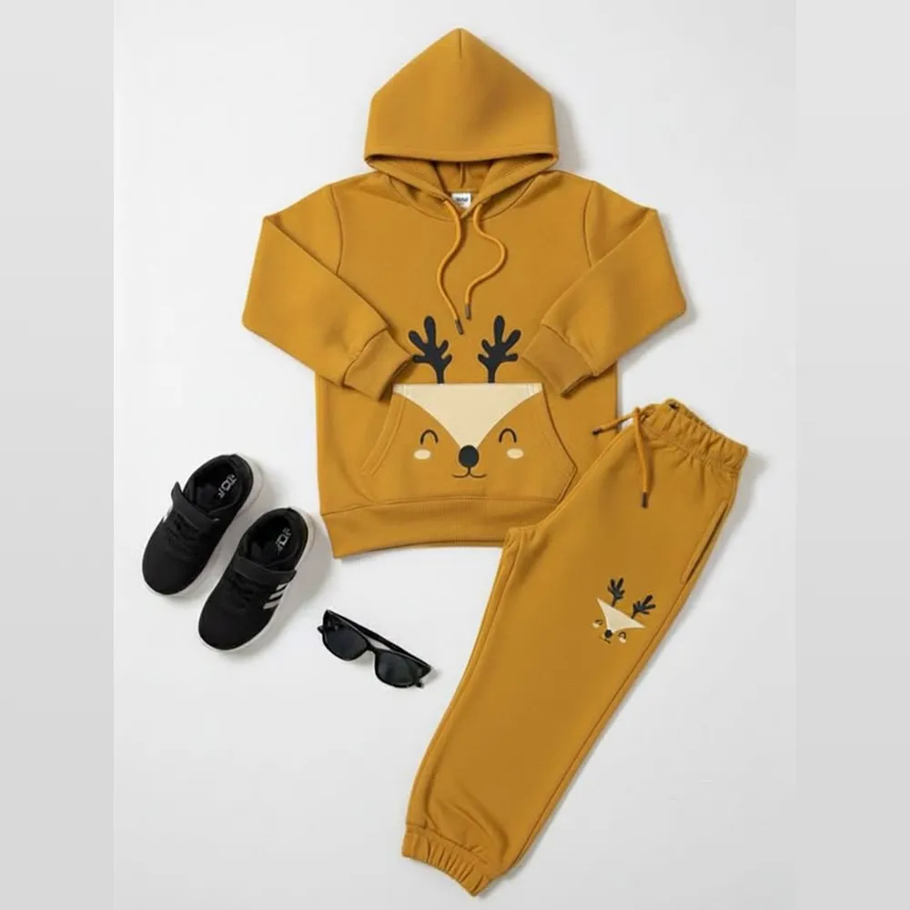 Wrap your little one in cozy comfort with this mustard hoodie coord set, designed to bring warmth and style together. Featuring a printed pullover hoodie with a functional kangaroo pocket paired with matching trousers, this outfit is perfect for cool days, playtime, and casual outings. The vibrant mustard shade adds a cheerful pop of color, while the relaxed fit keeps kids comfortable and free to move all day long.