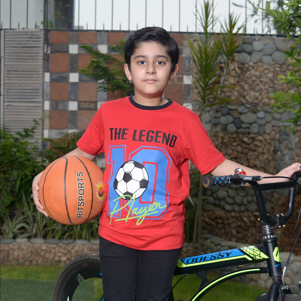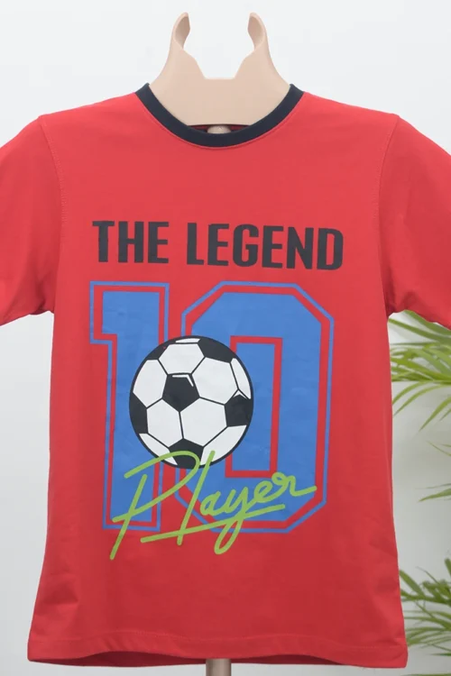 The Legend 10 Player T-Shirt – Red Football Graphic Tee for Boys